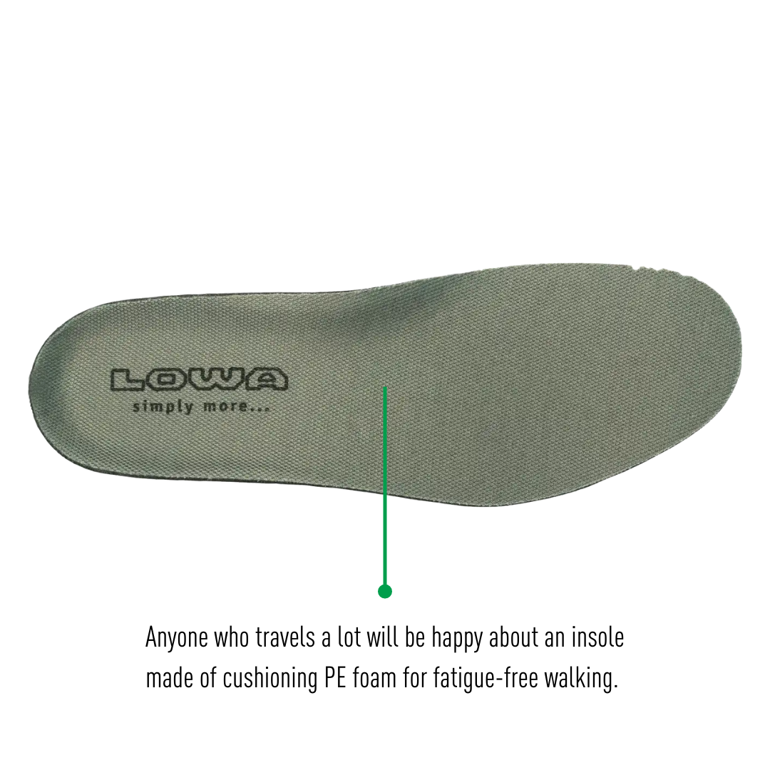 LOWA insoles aids the transportation of moisture away from the foot. The LOWA insole range minimizes friction and reduces fatigue in conjunction with LOWA's own patented climate control system.